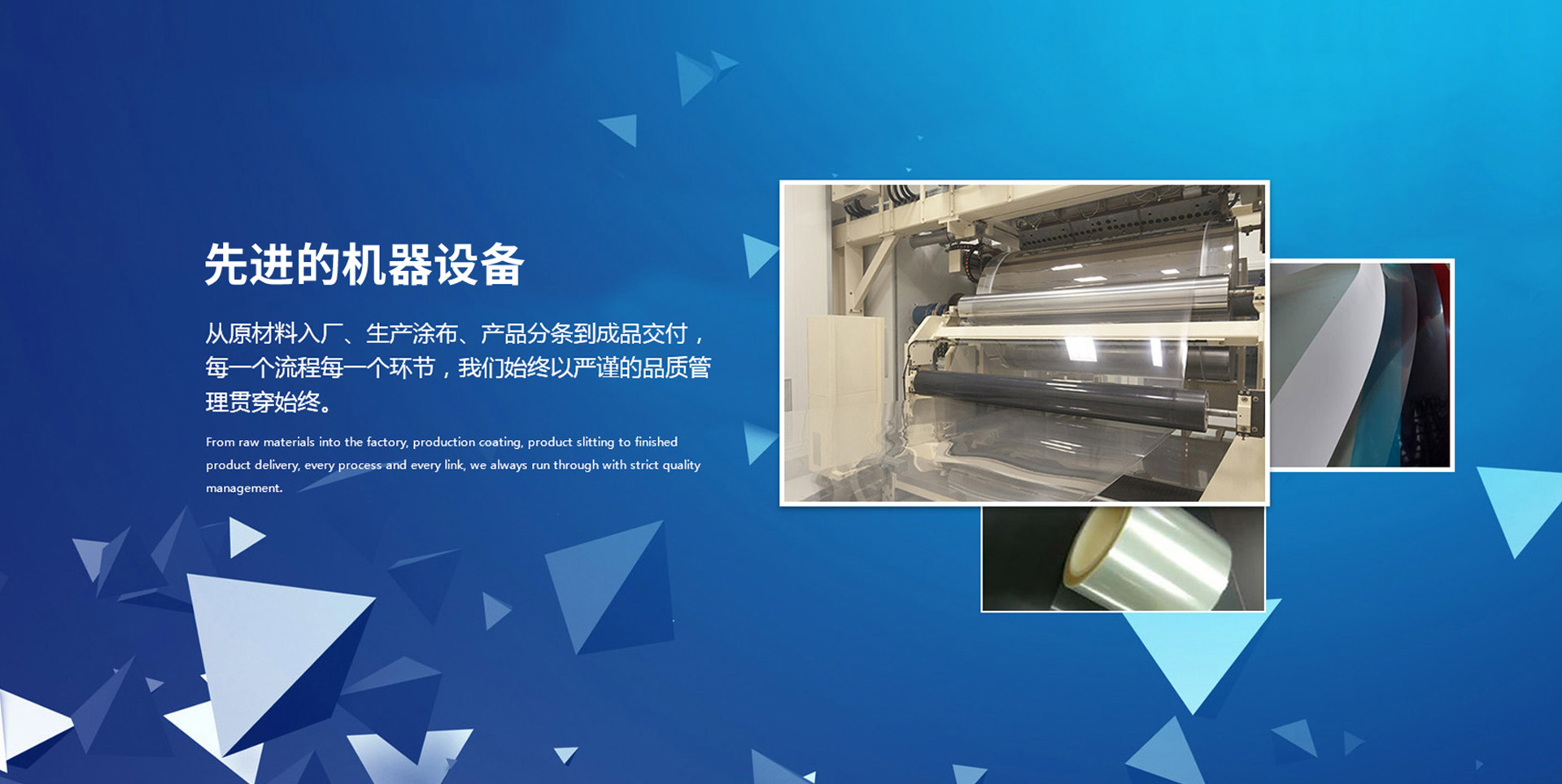 我們引進業(yè)界領(lǐng)先的涂布、復(fù)卷分切設(shè)備及高潔凈車間,追求產(chǎn)品的極致性能與穩(wěn)定品質(zhì)。